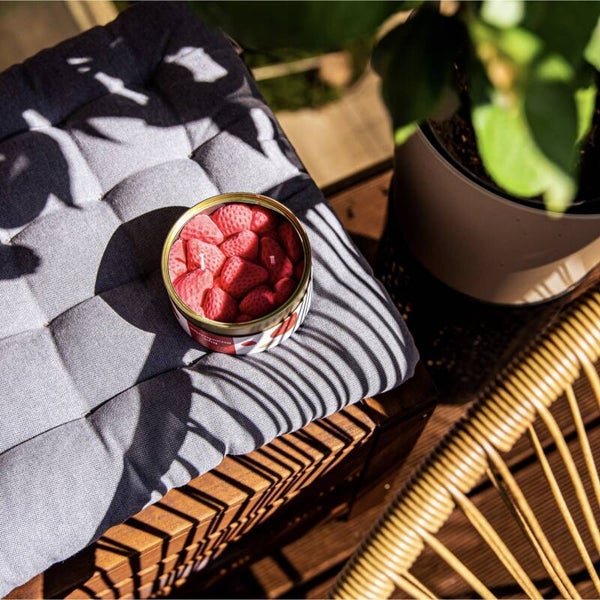 Is er een zomers dessert dan aardbeien en (plantaardige) room? Wij denken van niet. Ook vinden we het niet eerlijk dat de lekkerste smaken en geuren seizoensgebonden zijn. Dus veranderden we ze in een kaars die eruitziet als aardbeien en er ook naar ruikt. De geur is zelfs zo lekker dat je naar je warmste kinderdromen gaat zodra je er een opsteekt.
