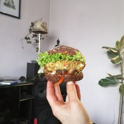 - Kneed enkele burgers uit deze 'bonenpuree' en bak ze voor een 15-tal minuutjes in de airfryer of een half uurtje in de oven (halverwege draaien)